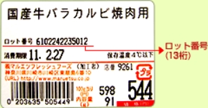 国産牛肉の出生の年月日や飼養地、異動内容や種別等が検索できます。 国産牛肉個体識別番号・ロット番号を検索するには、お買い求めのマルエツ国産牛肉のパックシールをご用意ください。