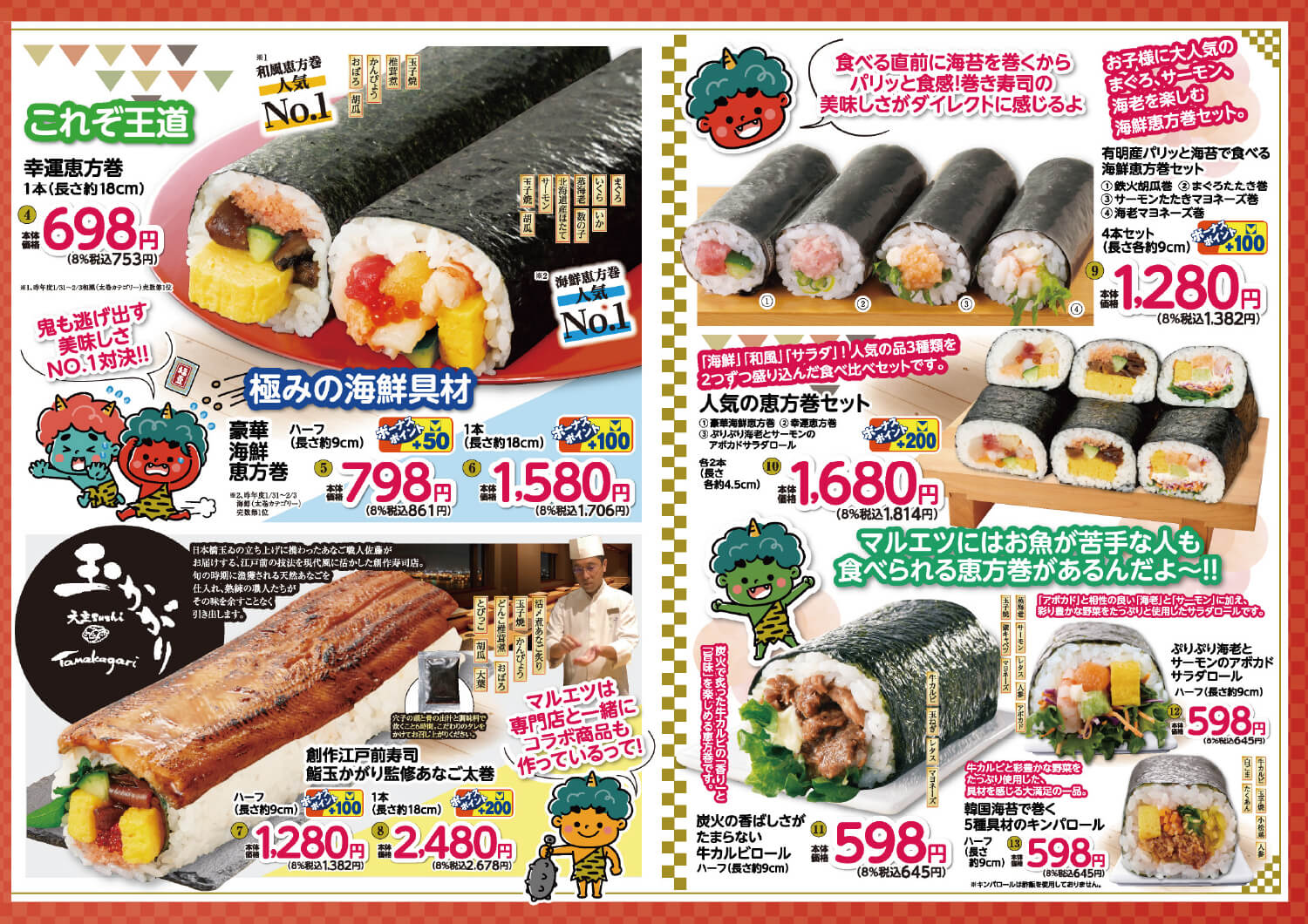 店舗により取り扱い商品が異なりますので詳しくは各店舗のリーフレットをご覧ください。