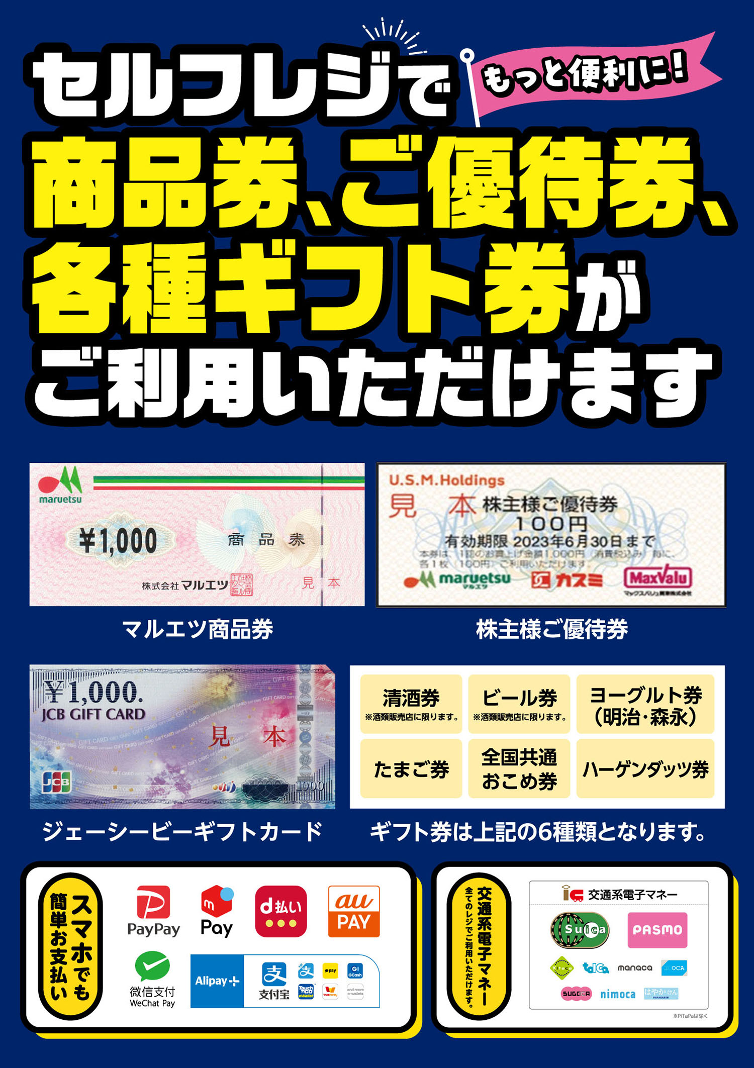 セルフレジで商品券、ご優待券、各種ギフト券がご利用いただけます