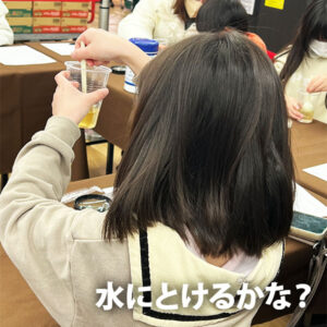 ・虫眼鏡でうどんスープ観察/袋のひみつ/水で溶けるか実験