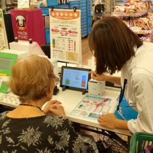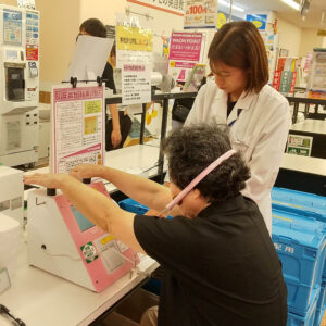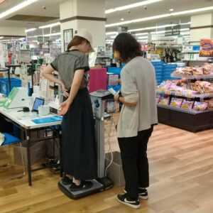 開催場所がサッカー台の横なので買い物が終わった後に測定して帰宅されるという良い流れが出来た。 お話を伺っていると、このような測定イベントは自治体や近隣他社スーパーでも行っているようだったが、定期開催では無いのか、「3か月後にまた開催します」とお伝えすると大変喜ばれた。「血管年齢」を気にされるお客様が多かった。