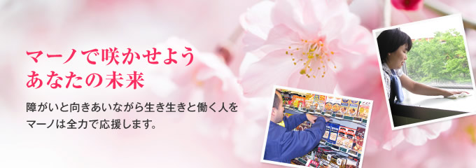 『マーノで咲かせようあなたの未来』障がいと向きあいながら生き生きと働く人をマーノは全力で応援します。