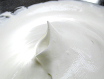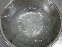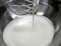 - ①氷水にあて10℃以下で泡立てる。(器具も冷やしておくとなお良い)
