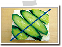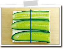きゅうりはパンの大きさに合わせて斜めに薄切りにする。 |