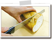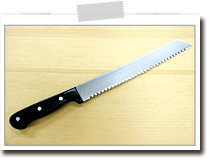パン切り包丁(刃が波状のもの)はパンをつぶさずきれいに切れますので、 あれば使ってください。 |