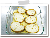 フランスパンの代わりに、食パンやイングリッシュマフィン、レーズンパンなどでもおいしく作れます。 |