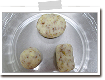 ※油の温度が低くて揚げ時間が長いと破裂の原因になるので、一度に揚げる個数は2~3個位が良いでしょう。 |