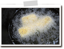 ※油の温度はパン粉を入れてほとんど沈まずにすぐ浮く位又は、コロッケを入れたら全体に活きよいよく泡が全体からでる位になります。 |