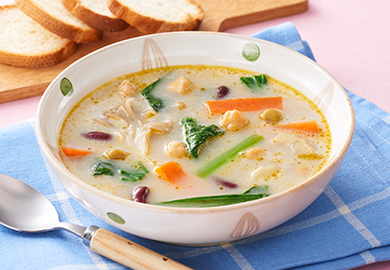小松菜と豆のマカダミアミルクスープ