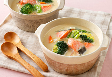 鮭と春キャベツのみそミルクスープ
