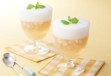 梨のシャキシャキ感とシュワっとするゼリーの食感が楽しいゼリー。