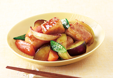 • 3.②のフライパンにBを入れて炒め、②を戻し入れて炒め合わせ、混ぜ合わせたCを加えて味を絡める。