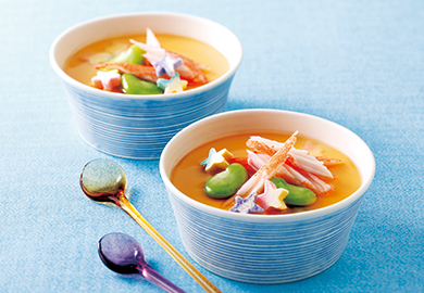 色合いがキレイな初夏らしい茶碗蒸しです。
