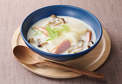 ソーセージとかぶの豆乳スープ