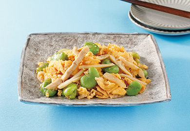 そら豆とやわらぎメンマのたまご炒め