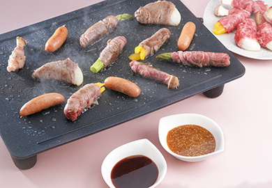 いろいろな野菜を巻き、お好みのたれでどうぞ。
