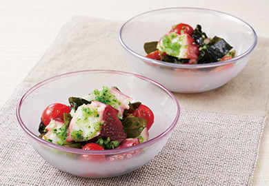すりおろしたきゅうりの緑酢で作る涼しげな一品。