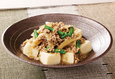 高野豆腐とひき肉でダブルたんぱくが摂れるおかず。