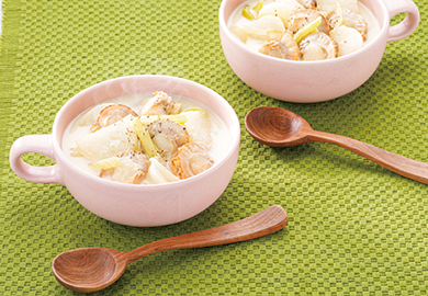 帆立とかぶの豆乳スープ