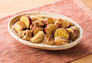 • 2.鍋にサラダ油を熱して鶏肉を炒め、色が変わったらAを加え、煮立ったら①、厚揚げを加えて弱火にし、火が通るまで約10分煮る。