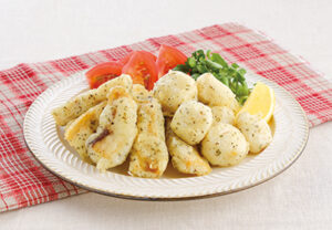 炭酸水で衣がサクサクに!バジルとチーズが香る一品。