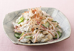 里いもで作るポテトサラダはトロッとしていて味の絡みも抜群。