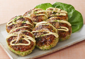 たっぷりの「お好みソース」と揚げ玉で屋台風に。