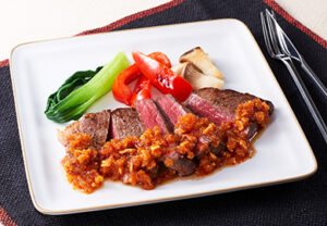 サルサソースでステーキをメキシカン風に。