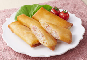 パリパリの皮とねっとりとした里いもの食感が楽しい春巻きです。