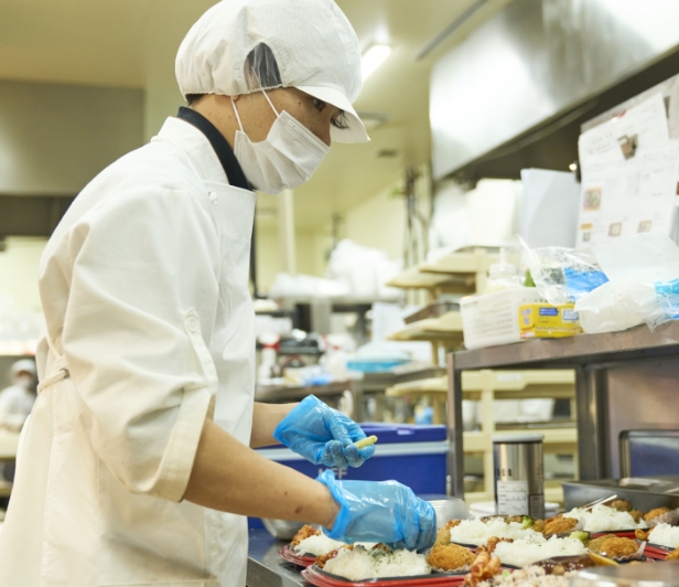 ピークタイムや人手が足りない場面では、マネジャー自身も製造業務に入ります。実際にお弁当づくりを行うことで、作業工程や時間配分を把握し、スタッフが働きやすい体制づくりや、品質の安定につなげています。現場に立つことは、より良い部門運営を行うための大切な仕事のひとつです。